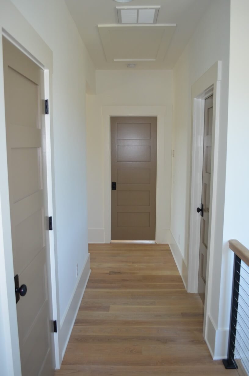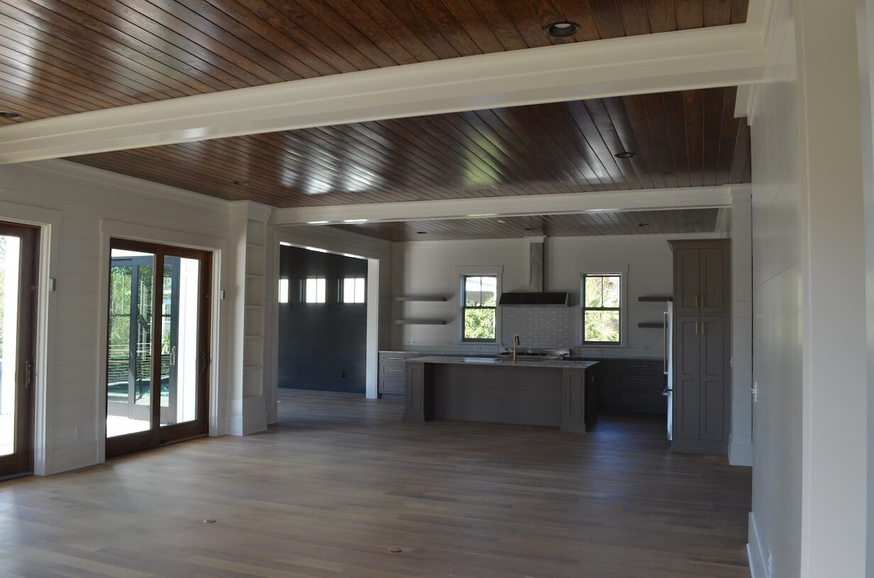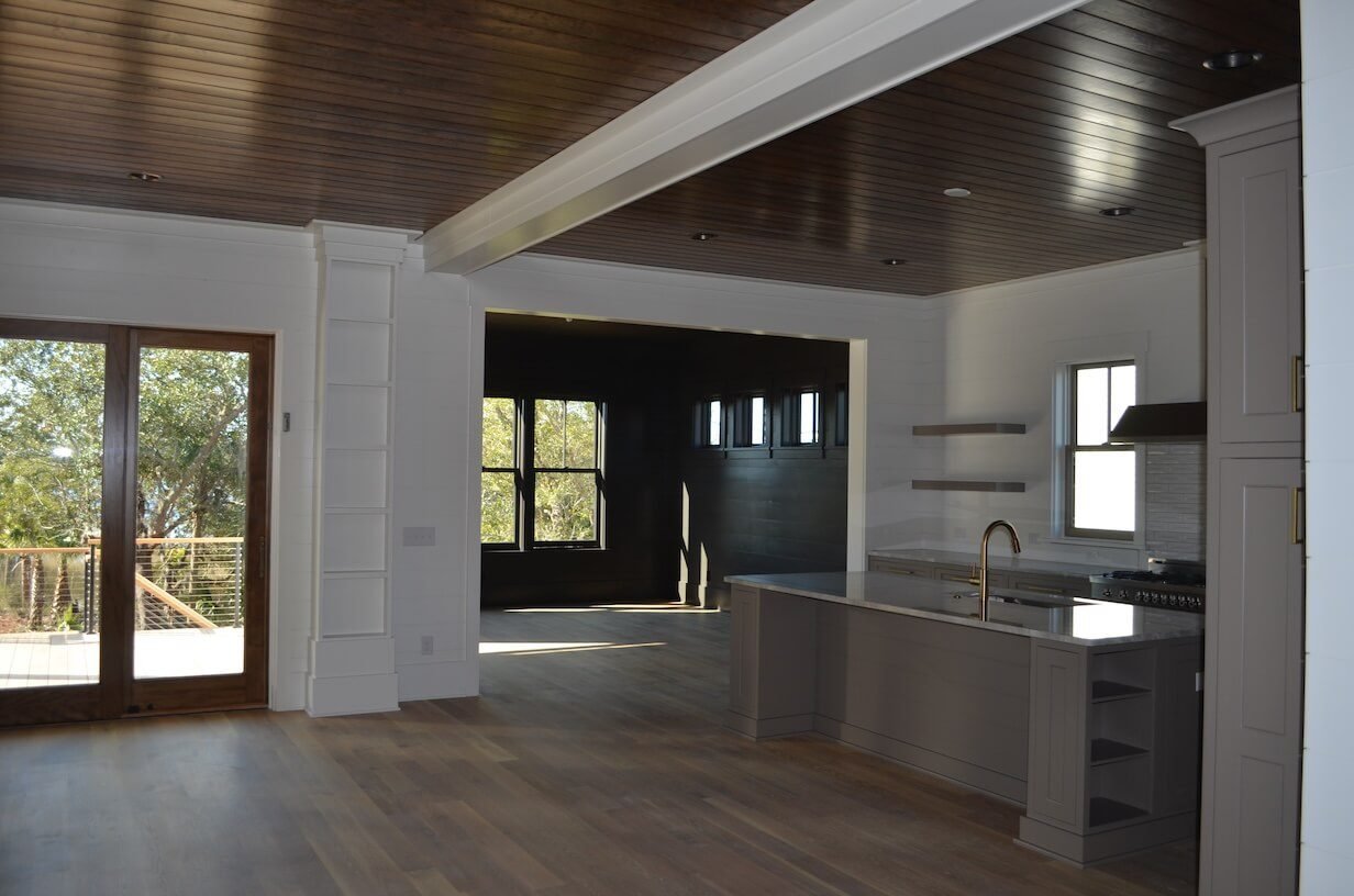 Interior Painting Services: Our Awendaw painting team delivered exceptional results featuring pristine white walls throughout all living spaces creating bright, airy coastal ambiance, stunning wood plank ceiling with dark stain creating dramatic contrast against white walls, and expansive open-concept main level with flawless paint finishes and smooth coverage. The home includes clean hallways with crisp white walls and precision trim work, coordinated color palette maximizing natural light from abundant windows, and seamless paint application on all ceilings, walls, and architectural details. All interior spaces received professional finishing designed for elevated coastal living.