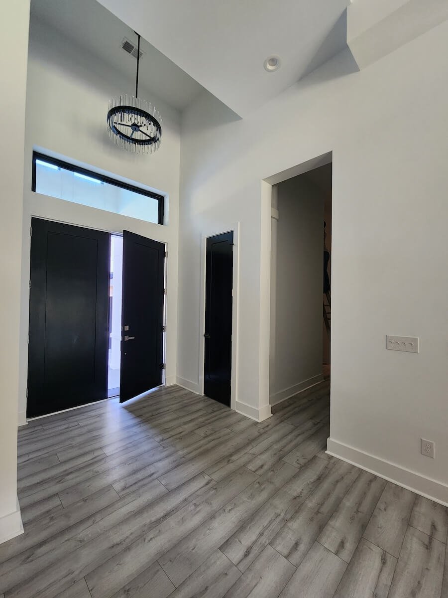 VMS Home Painting completed a striking interior and exterior painting project for this contemporary 4,120 sq-ft home in Coosaw Creek, North Charleston. This Charleston area property showcases bold modern design with dramatic color choices and expert paint finishes throughout.