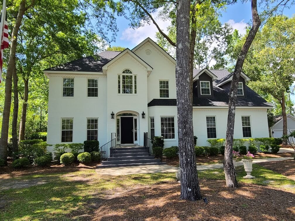 VMS Home Painting completed a dramatic exterior transformation for this traditional brick home in Coosaw Creek, North Charleston. This Charleston area project showcases our expertise in brick painting and complete exterior color changes, transforming the home’s appearance while protecting the surface.