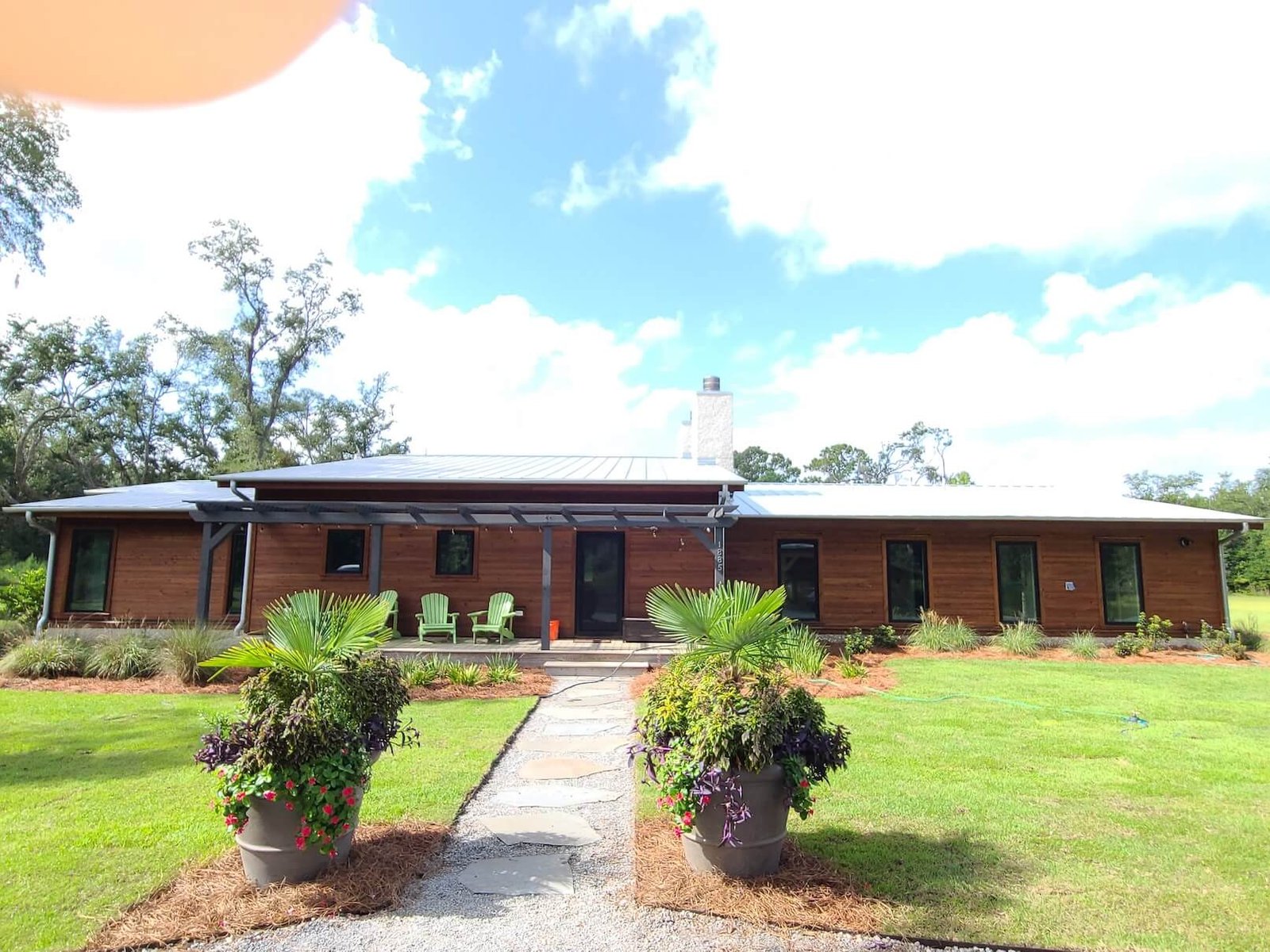 VMS Home Painting completed a striking interior and exterior painting transformation for this modern 1,100 sq-ft ranch-style home. This Charleston area property showcases contemporary design with bold color choices and natural material combinations.