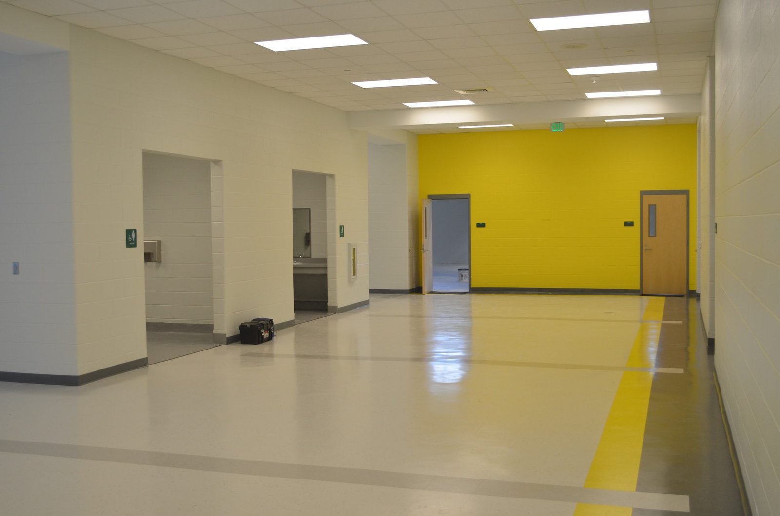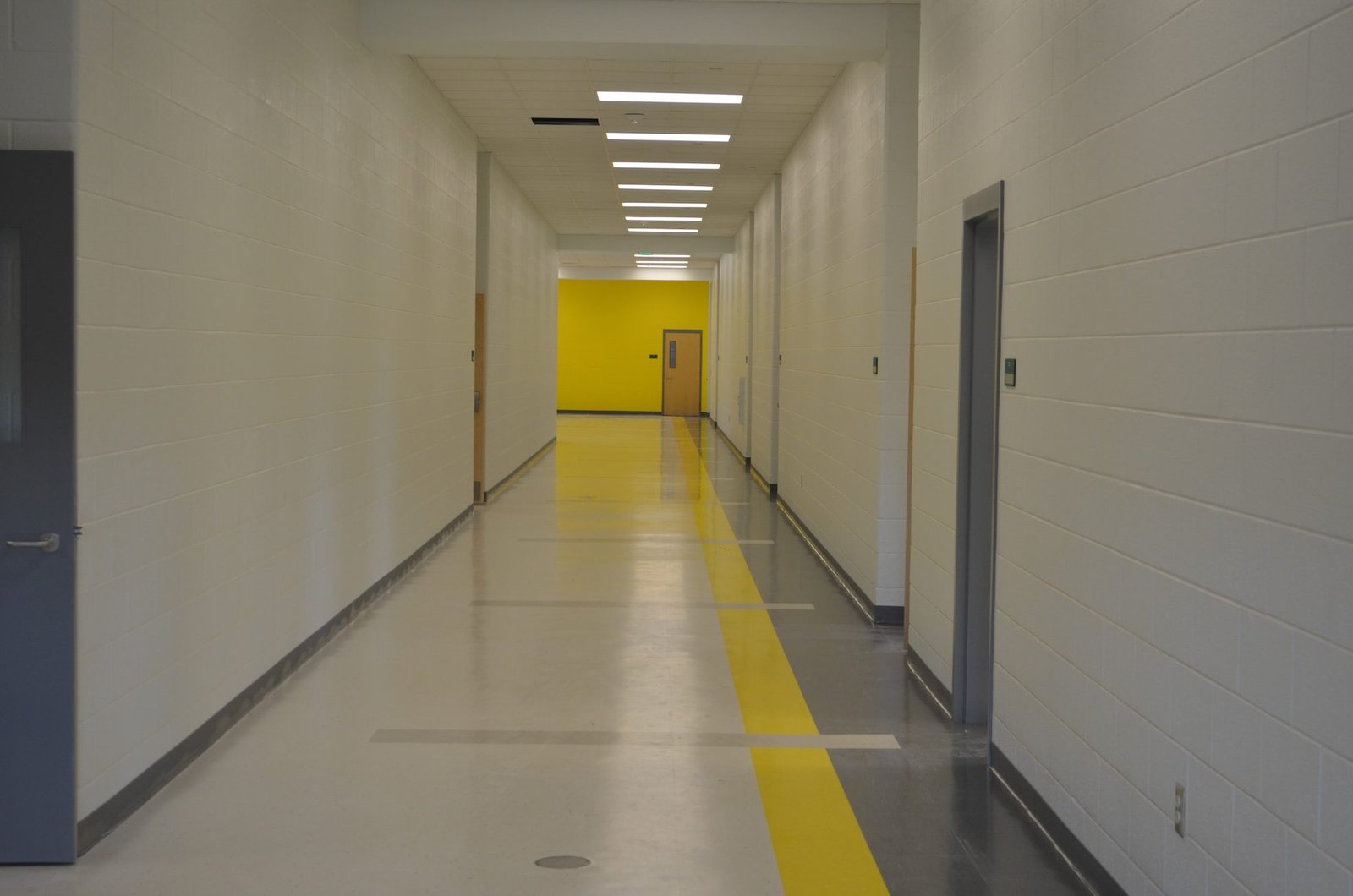 Commercial Painting Services: Our commercial painting team delivered professional results featuring long hallways with durable paint systems designed for high-traffic educational environments, vibrant yellow accent walls creating school spirit and wayfinding throughout the facility, and large common areas including cafeteria and multipurpose spaces with industrial-grade paint application. The project includes smooth ceiling finishes across extensive square footage, coordination with construction schedules to meet school opening deadlines, and commercial-grade paint products meeting educational facility standards for durability and maintenance.