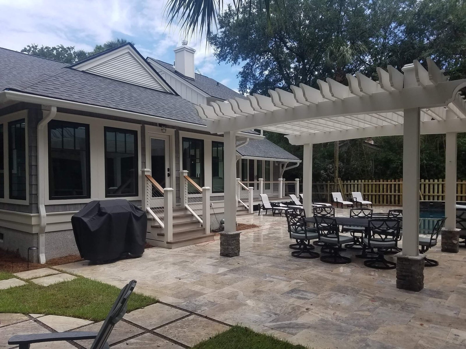 Exterior Painting: The home’s exterior was transformed with premium weather-resistant paints designed for Charleston’s coastal climate. We completed all siding, trim, deck railings, and architectural details to perfection.